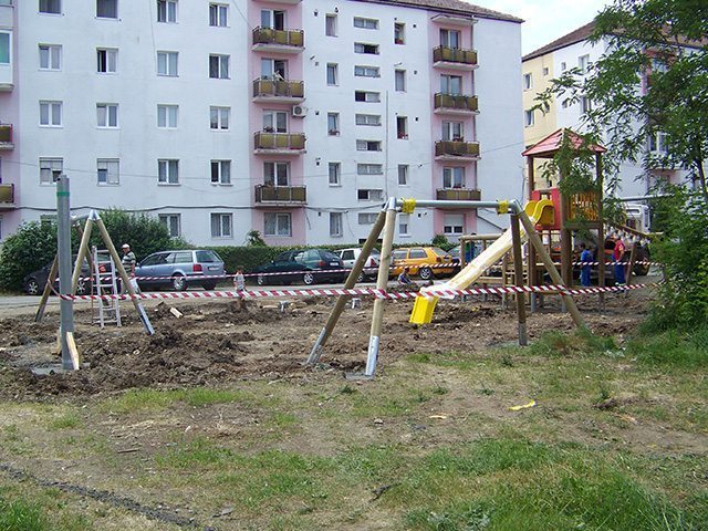 Descrierea lucrării:Un adevărat complex de joacă între blocuri este şi cel din Al. Streiu, Sibiu, care se remarcă prin multitudinea de hinte şi balansoare, dar şi prin atractivele carusele sau "turnuri" viu colorate. Copii pot să-şi etaleze diferitele aptitudini, să-şi dezvolte personalitatea comunicând cu cei de vârsta lor, sau să participe la jocuri educative pe echipe sau individual. Ca orice loc de joacă amenajat de Loftrek, şi acesta figurează deja pe lista preferinţelor celor mici.