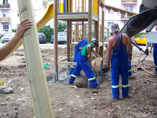Montajul tuturor acestor echipamente s-a realizat într-o singură zi. Ancorarea s-a făcut prin turnarea unor fundaţii de beton. În funcţie de echipament, gropile au avut dimensiunile cuprinse între de 0.50m  x 0.50m x 0.50m în cazul jucăriilor pe arc şi 1.20m x 1.00m x 1.00m în cazul caruselului Cuib.