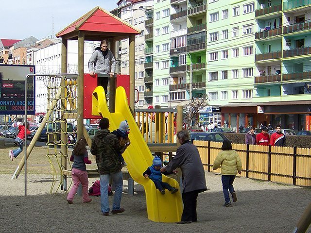 | Descrierea lucrării: | Unul din locurile populate de copii este şi bulevardul Mihai Viteazu din Sibiu, dotat cu echipamente de joacă diverse şi atractive, multifuncţionale şi viu colorate, prietenoase şi amuzante. Turnul cu tobogan, căţărătorile, caruselul cu băncuţe sau balansoarele pe arc cu diferite forme, creează un loc incitant, special şi tentant. Hintele de diferite modele invită copii la comunicare, la mişcare, şi face imaginaţia să zboare spre cele mai frumoase momente ale copilăriei. Montajul tuturor acestor echipamente s-a realizat într-o singura zi. Ancorarea s-a făcut prin turnarea unor fundaţii de beton. În funcţie de echipament, gropile au avut dimensiunile cuprinse între 0.50m x 0.50m x 0.50m în cazul jucăriilor pe arc şi 0.40m x 0.40m x 0.80m pentru celalalte echipamente. | |
