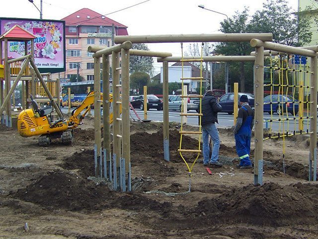 Montajul tuturor acestor echipamente s-a realizat într-o singura zi. Ancorarea s-a făcut prin turnarea unor fundaţii de beton. În funcţie de echipament, gropile au avut dimensiunile cuprinse între 0.50m  x 0.50m x 0.50m în cazul jucăriilor pe arc şi 0.40m x 0.40m x 0.80m pentru celalalte echipamente.