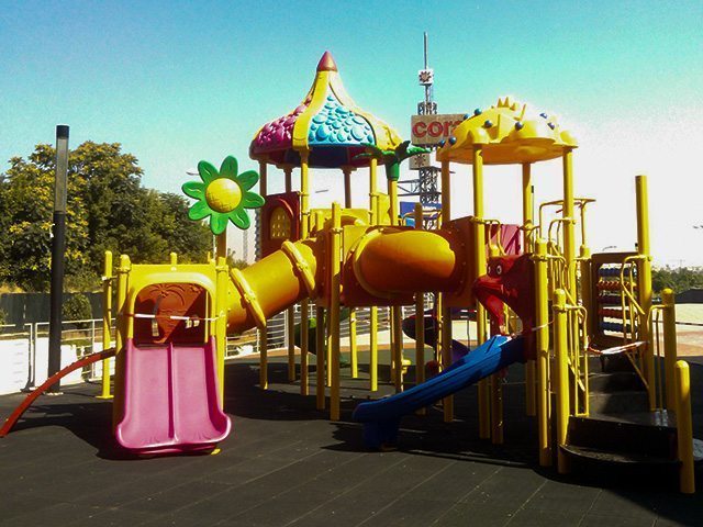 Materiale:Structura este din metal galvanizat, iar elementele decorative si toboganele sunt confectionate din polietilena.